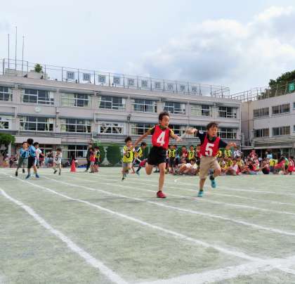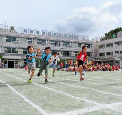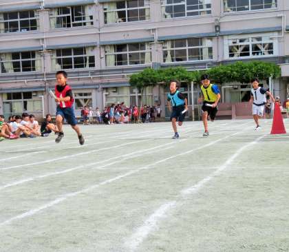 写真は、中学年リレー男子の様子です。