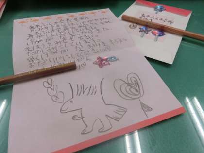 今朝、ビックリしたのは、下学年にも応援団がいるということです。私のワークデスクに、お見舞いのお手紙を届けてくれていたのです。おととい、顔面をひどく負傷してしまった自分にとりましては、子どもの心のこもった文章に感激でした。早く傷を治してくれる特効薬となりそうです。