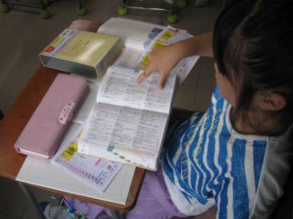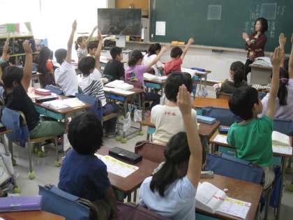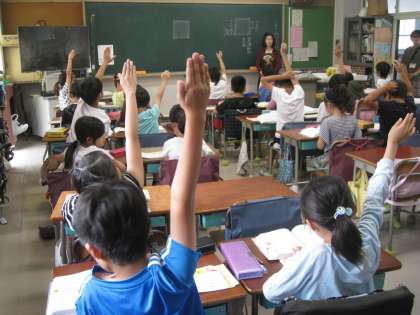 新出漢字を学ぶ3年生の机上には、国語辞典が置かれています。言葉集めをするにあたり、それを活用してもOKというスタイルの授業です。難しい語句を含め、自信をもって挙手する子が大勢いました。