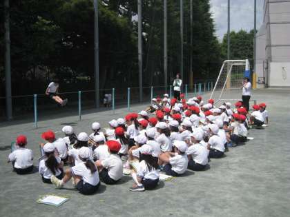 今日の3年生体育は鉄棒運動です。友達の鉄棒名人が次々に技の数々を披露してくれました。それらを鑑賞し合うことを通して、意欲をもったり、自己目標を定めたりしているのです。
