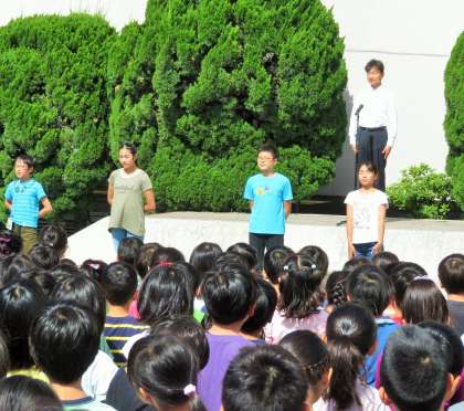 私は、6年生になっても男女が仲良くできる、このような松丘小学校に来ることができてうれしく思いました。6年生を手本として、子どもたちがさらに優しい子に育ってほしいと思っています。