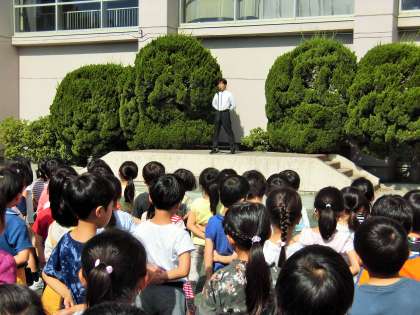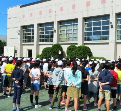 全校朝会では、校門で子どもたちを迎えている時に、月曜日で荷物を多く持っているにもかかわらず、多くの子が私と握手をしてくれました。その優しさがとっても嬉しかったので、全校の子どもたちに話をしました。中には両手を添えて握手をしてくれる子もいます。「校長先生!」と手を振ってあいさつをする子もいます。ニコッと笑顔で会釈をする子もいます。どのあいさつも優しさが感じられてとってもうれしいのです。