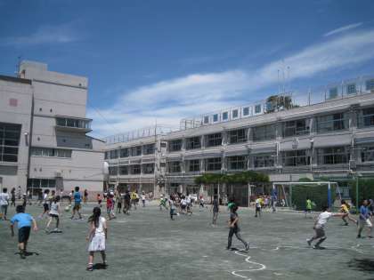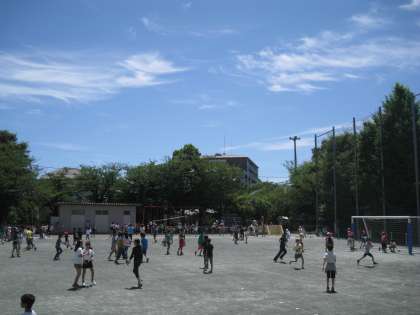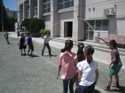 抜けるような青空が広がる中休み、トップで校庭へ出て来たのは6年生。早速、氷鬼や長縄が始まっていました。他の学年の子どもたちも、思い思いの遊びで楽しく過ごしていました。