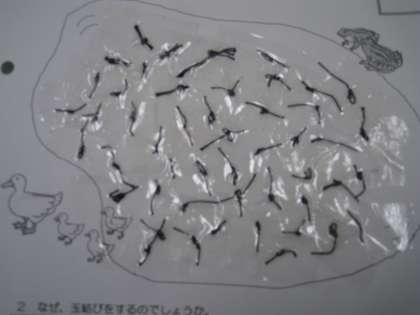 授業が終わる頃、お池をこんなに沢山のおたまじゃくしが泳いでいるワークシートを発見しましたよ。