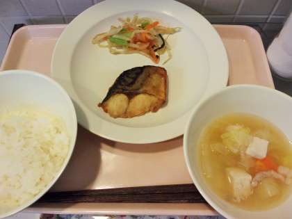 にんにくみそで漬け込んで焼いたさばは、味がしっかりしてごはんが進む献立です。