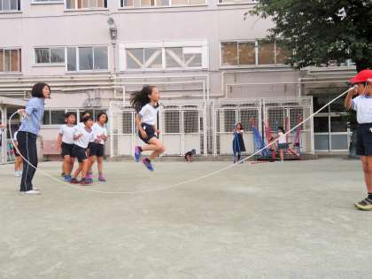 松丘小学校の休み時間は、子どもと教師が一緒に遊ぶ「共遊び」を奨励しています。遊びを通して、授業中だけでは分からない、一人ひとりのよいところに気付いたり、ほんの小さな変化や情報も、この共遊びの中から得られればと思っています。