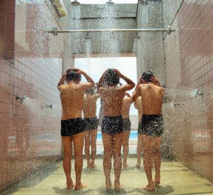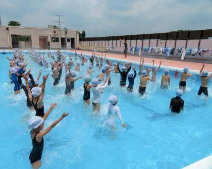 今日は、「リズム泳」での水慣れ中心の学習でした。