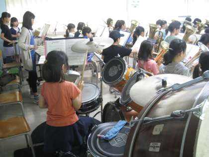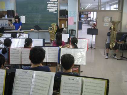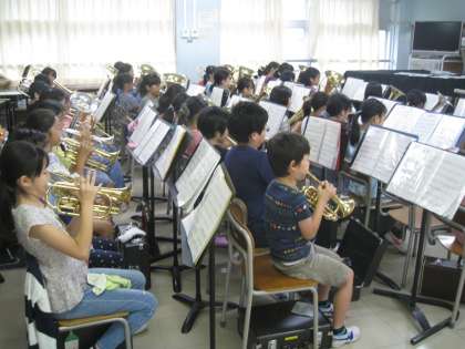 雨降り、しかも月曜の朝。ちょっぴり気だるさを覚えている子もいるかもしれません。しかし、音楽室では金管バンドのみんなが、そんな心境を感じさせない活動ぶりです。