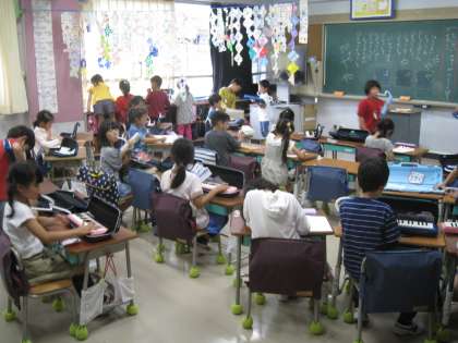 1年生は鍵盤ハーモニカの練習、先生のお手伝い、高学年のお姉さんとふれあう等、外遊びができなくても、室内で楽しく過ごす様子が見受けられました。