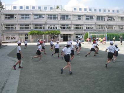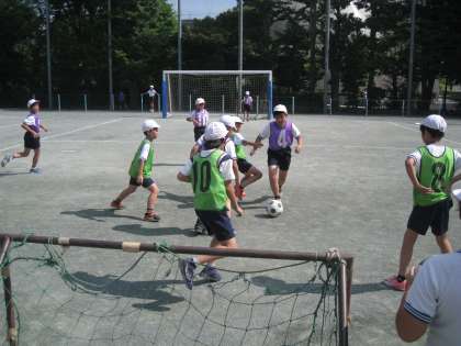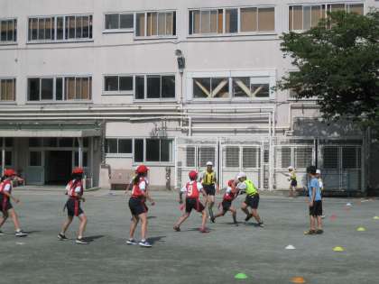 お次は校庭で張り切る、おにごっこ、ミニサッカー、タグラグビークラブです。