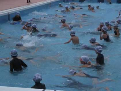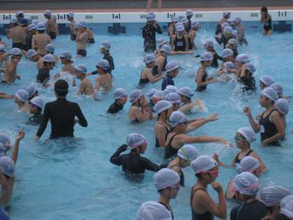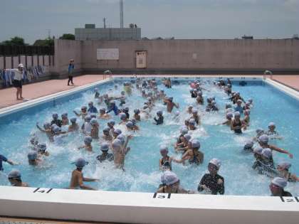 30度近くまで昇温してきました。けれども、水しぶきをあげている4年生を見ていると、気分は爽やか! 水慣れ、リズム泳、一つ一つが心地よさげでした。