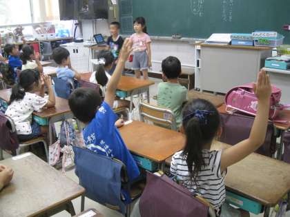 発表舎のためだけに設けられている、朝のミニスピーチではありません。聞き手のみんなにとっても、短時間ながら収穫は大きいのです。お友達の発表を聞いたあとの質問コーナーを参観していると、それがよく分かります。「話す、聞く」力がどんどん向上している1年生なのです。