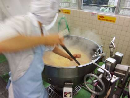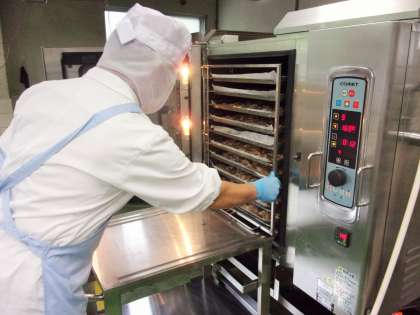 鉄板に鶏肉を並べるのも、一つ一つ調理員さんが行います。