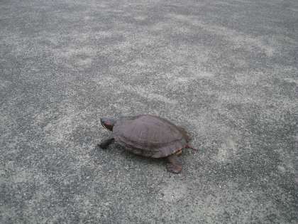 でも、今朝は大丈夫。発見した5分後には、もうおうちへ帰ってしまい、グラウンドにその姿はありませんでした。そう、足取りがとっても軽快なカメさんだったのです。