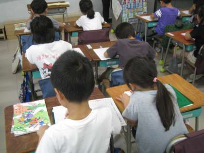 毎日欠かさず記入している連絡帳に、1年生も慣れてきました。黒板の文字を書き写すだけではなく、時に先生が発した簡単な内容を書くという「ひねり」も織り交ぜられていました。「聞き取る」力の向上には、日頃からの小さな積み重ねが、ものを言うのです。