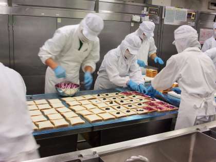 ブルーベリージャムサンドは、一つ一つパンにジャムを塗っていきます。
