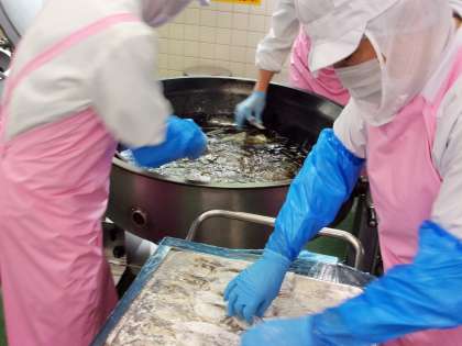 これは、調理員さんが見た目にもおいしそうな給食を仕上げるためのポイントだと話してくれました。