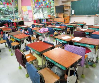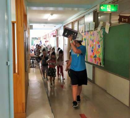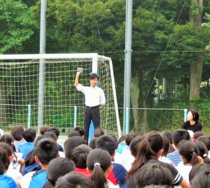 7月の避難訓練は、始業前の先生がいない場合に地震が発生し、その後、理科室から出火という想定で行いました。多くの子どもたちは、「お・か・し・も・ち」の約束を守り、素早く、そして真剣に避難訓練に取り組みました。しかしながら、ほんの一部の子どもたちがお喋りをしてしまったり、ハンカチを口と鼻にあてることができていなかったりという状況があったので、今回の避難訓練は「不合格」としました。