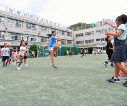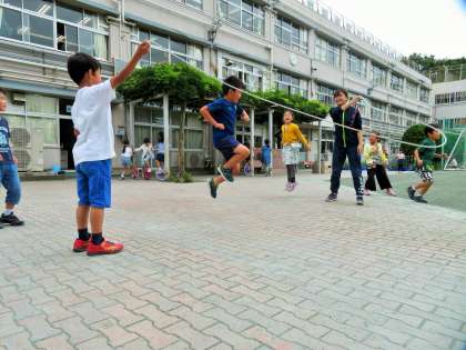 松丘小学校の休み時間は、子どもと教師が一緒に遊ぶ「共遊び」を奨励しています。遊びを通して、授業中だけでは分からない、一人ひとりのよいところに気づいたり、ほんの小さな変化や情報も、この共遊びの中から得られればと思っています。