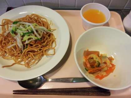 給食では、中華麺をオーブンで蒸し焼きにして、少しだけ中華麺に焦げ目をつけパリッと仕上げました。