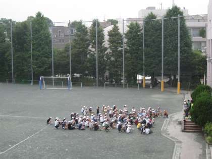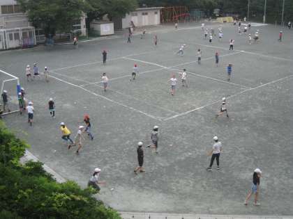 校庭をいっぱいに使い、全身も目いっぱい使って楽しい時間を過ごしたあとには、振り返りのコーナーもありました。