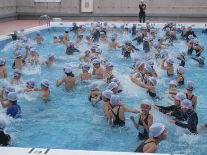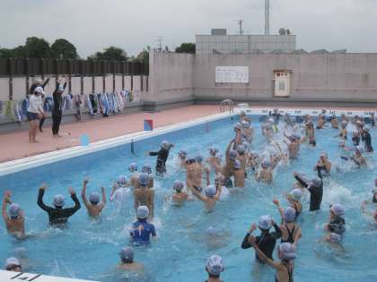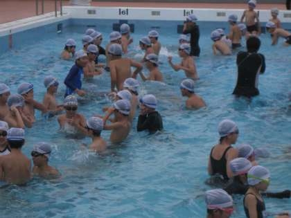 雨と低温のため先週はほぼ中止となった水泳授業。本日も1・2校時は気温と水温が基準値を満たさず、入れませんでした。しかし、薄日が差し始め、3・4校時の4年生はめでたく解禁です。校庭で汗びっしょりになって帰ってきたみんなには、嬉しいプレゼントになったことでしょう。