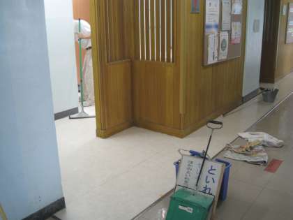 ひっそりとした校内で、精力的に清掃を行う我らがお助けマンを発見!