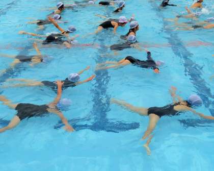 水慣れとともに、リズム泳を中心に「浮く」感覚を身に付けることを大切に指導しました。