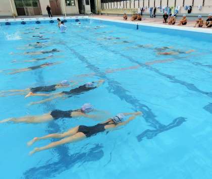 夏季水泳教室2日目です。今日も気温が低く肌寒い中での水泳教室です。プールサイドに上がってきた子どもたちに「どう、寒くない?」と声をかけると、「ううん、寒くないです。」という返事が返ってきました。プールの水は気持ちがいいようです。