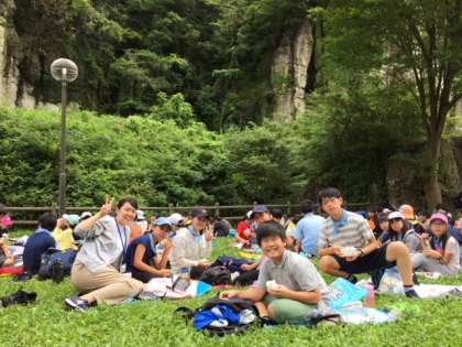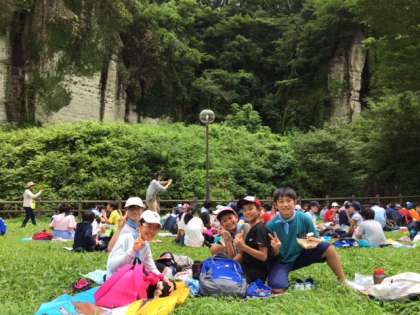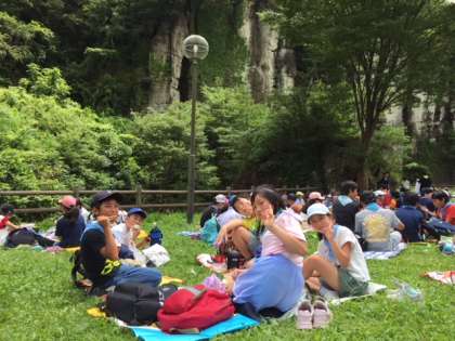 子どもたちは、芝生の上でくつろぎながら、待ちに待ったお弁当を食べています。美味しいお弁当をありがとうございました!