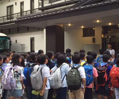 ホテル青晃園に到着し、開園式を行いました。開園式での姿勢も立派です。