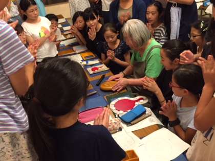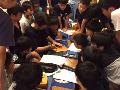 今夜は日光彫り体験です。職人さんから彫り方の基本を教えていただきました。「ひっかき」と呼ばれる独特の道具から生み出される流れるような曲線。その美しさに誰もが息をのむ・・・さすが職人技です!