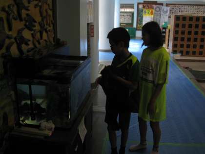 当番のお仕事をやるために登校していた科学・自然委員の5年生が、なぜか1年生を連れて歩いているところに出くわしました。事情を聞くと、第二部のプールに早く来すぎてしまっていたため(9時半)、先生のところに送り届けようとしていたそうです。心細かったであろう1年生も泣くことなく、無事に引き渡されたのでした。