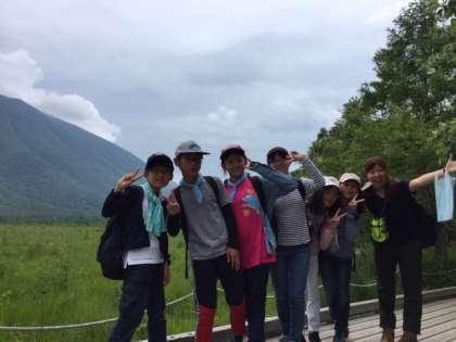 戦場ヶ原を歩いています。雄大な男体山がよく見えます。