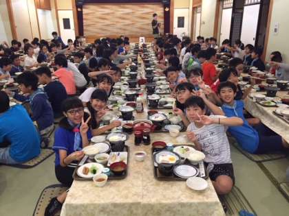 おいしい朝食をいただきました。みんな元気です!この後、閉室式を行います。