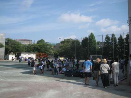 ほぼ定刻の到着、ご家族や先生方が出迎えました。