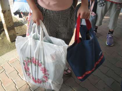 新学期スタートにあたり、お道具箱や防災頭巾等、今朝はいつもはない荷物があります。更に、夏休みの自由研究の力作も加わって、両手に大荷物という子も見られる始業式の登校風景です。