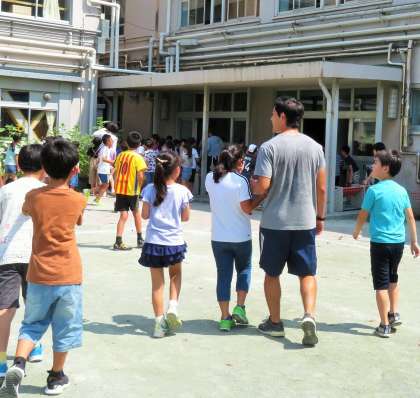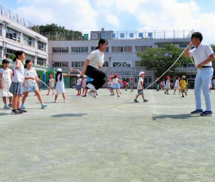 休み時間は、先生も一緒の「共遊び」の姿がたくさん見られ、校庭には笑顔がいっぱい広がっていました!