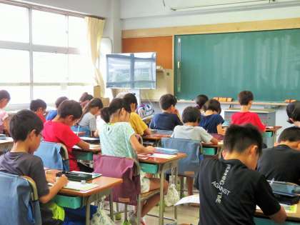 4年生は、国語の短歌や漢字ドリルに集中して取り組んでいました。