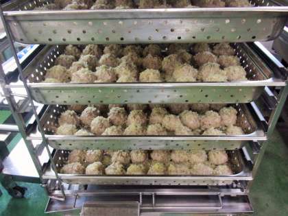 肉団子の周りについているもち米はカレー粉で色をつけました。