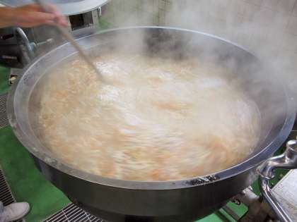 給食でも、菊の花のように見立てたシューマイの菊花蒸しを作りました。