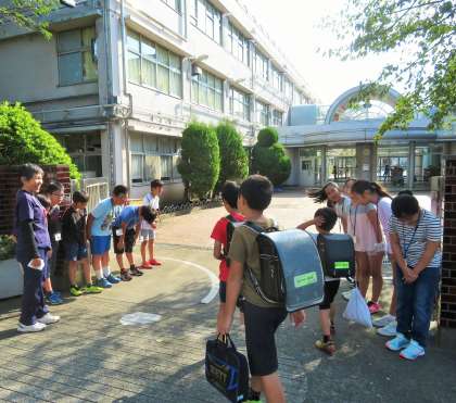 今年度第5回目の「優郷の学び舎あいさつ運動」は4年生です。正門や南門に分かれ、登校して来る子どもたちへ元気な「おはようございます!」を投げ掛けてくれています。