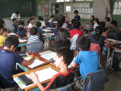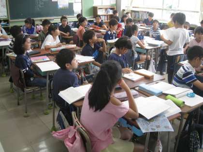 国語科「聞く、話す」の学習です。4年生が話し合い活動へ向けて、「安全」をテーマにどのような議題にするのかグループで相談したり、まとまった提案をクラス全員に伝えたりしています。
