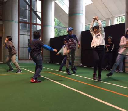 最後は「瞬間移動ゲーム」です。子どもたちはとっても楽しそうです!