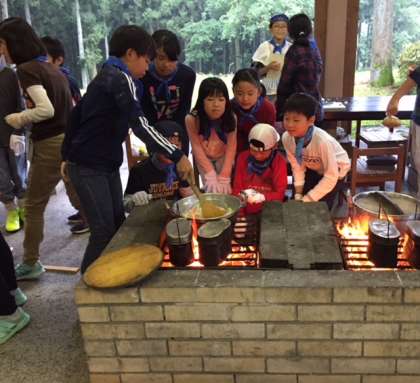 火をおこしてカレーやご飯をつくっています。