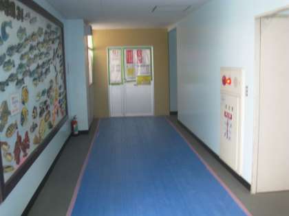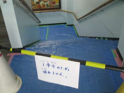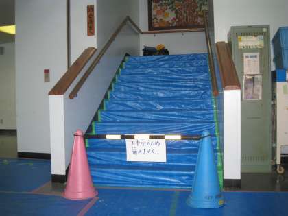 体育館棟2階、更衣室の改修工事が10月まで行われています。1階と2階を結ぶ階段は、主に2年生が使用していますが、工事期間中は安全のため、児童の通行は禁止としました。