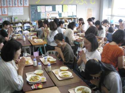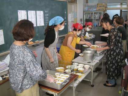 小学生時代に戻って、給食当番さんも親御さんが担いました。
