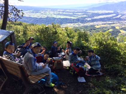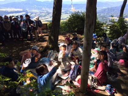 とっても急な山道をがんばって登っただけに、山頂で食べるお弁当の味は格別です。
