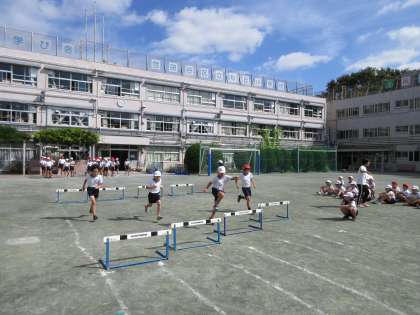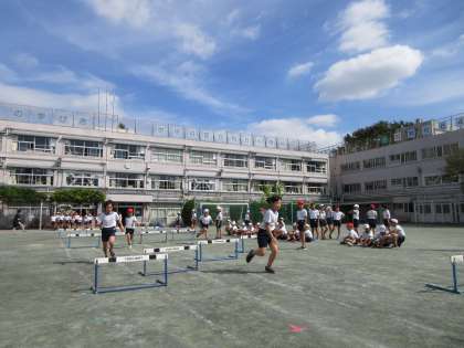 4年生は去年の小型ハードルに代わり、ハードルを使った障害走へと取り組みをスタートさせました。