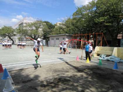 走り幅跳びでは、勢い余って砂場からとび出す子までいてビックリ!
